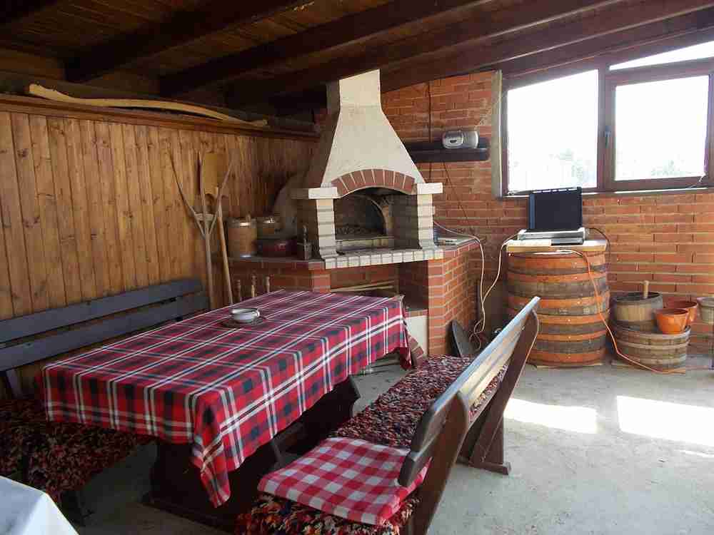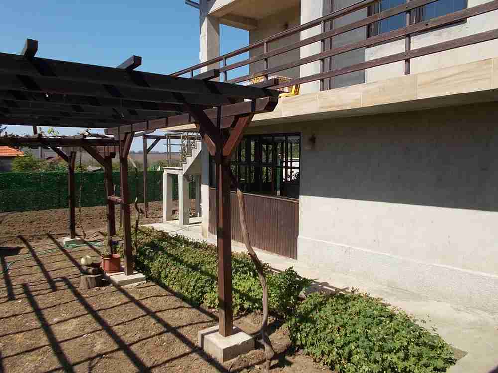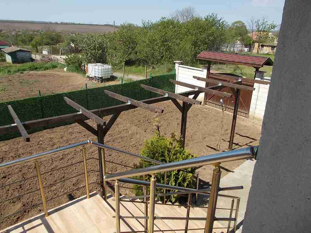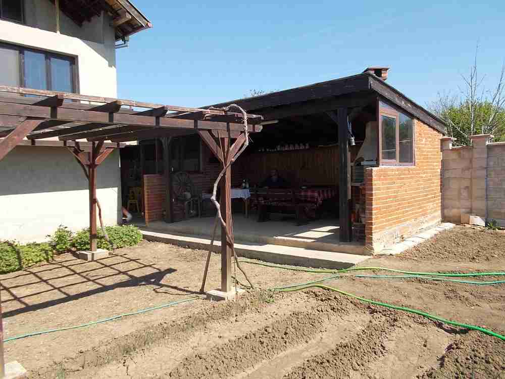 Дворът е ограден със стабилна ограда. В двора има барбекю, сондаж за вода и асма на чердак.